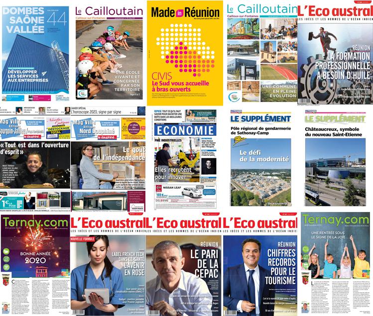 En collaborant aux quotidiens régionaux Le Progrès et le Dauphiné Libéré, j’ai acquis les outils de la presse écrite, du reportage à la mise en page et à la coordination. Depuis plusieurs années, je participe à la réalisation de nombreux cahiers spéciaux déclinés par thème : formation, développement durable, économie, santé, guides sur les loisirs et sorties, magazines de vie locale sur les acteurs d’un territoire…